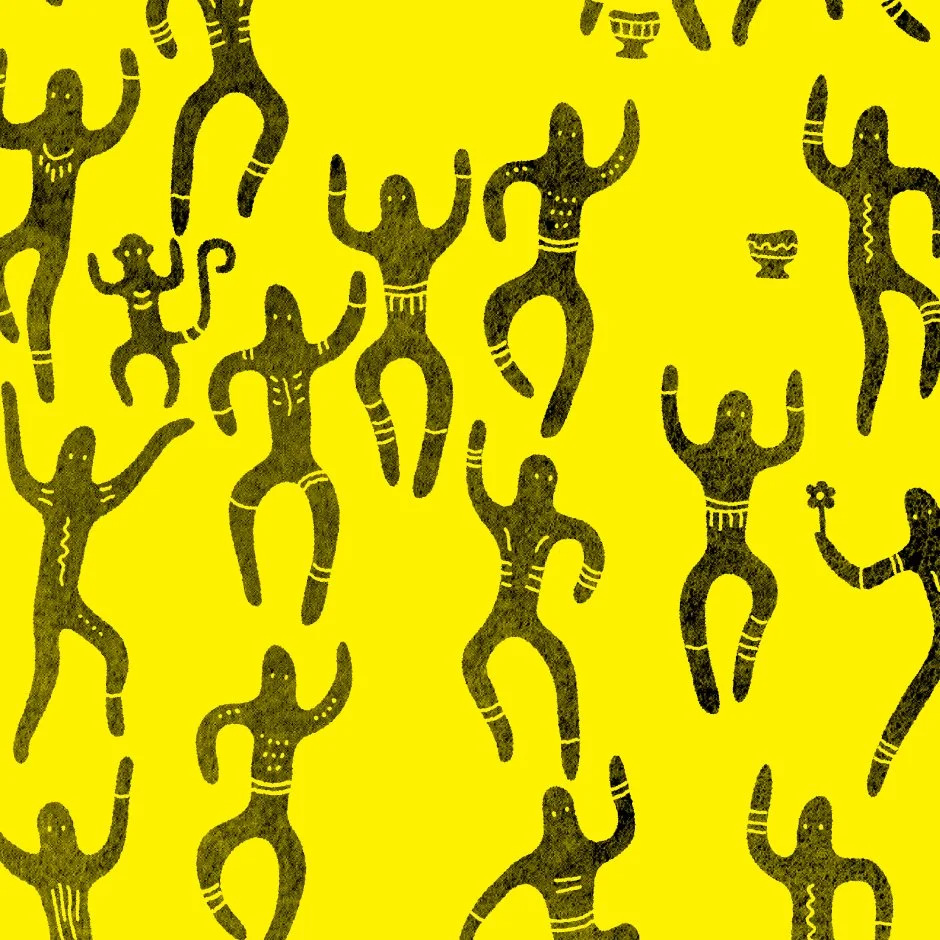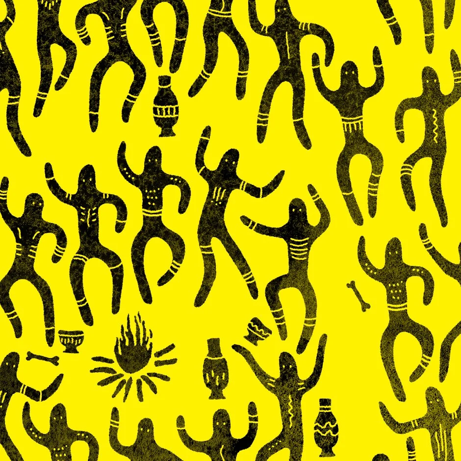 Against a vivid yellow backdrop, “squatters” drawn in a style reminiscent of African art multiply and fill the frame, dancing wildly as if to seize the space. Their chaotic yet celebratory presence visually embodies the music’s physicality and sense of release.
