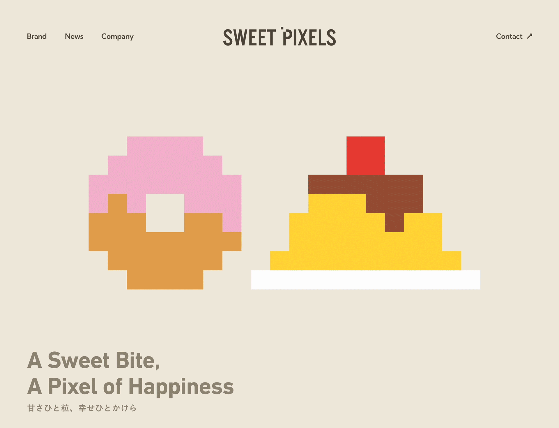 ロゴは1ピクセルを象徴的に配したシンボルを中心に設計し、多様なブランドの受け皿となるプレーンな構造に。キービジュアルでは解像度を落としたピクセルでスイーツを描写し、あえて細部を曖昧にすることで、ひとつの完成形ではなく、これから広がるSweet Pixelsの多彩な未来を映し出しています。