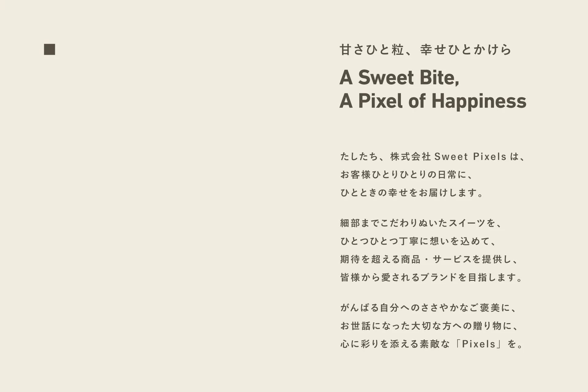 新社名「Sweet Pixels」には、ひと粒の甘さ=ピクセルが人生を彩り、小さな幸福を積み重ねていくという想いを込めています。エンタメ事業を展開するGENDAグループの一員として「エンタメとしての食」を追求し、スイーツを食品ではなく感情を動かす体験として提示しました。