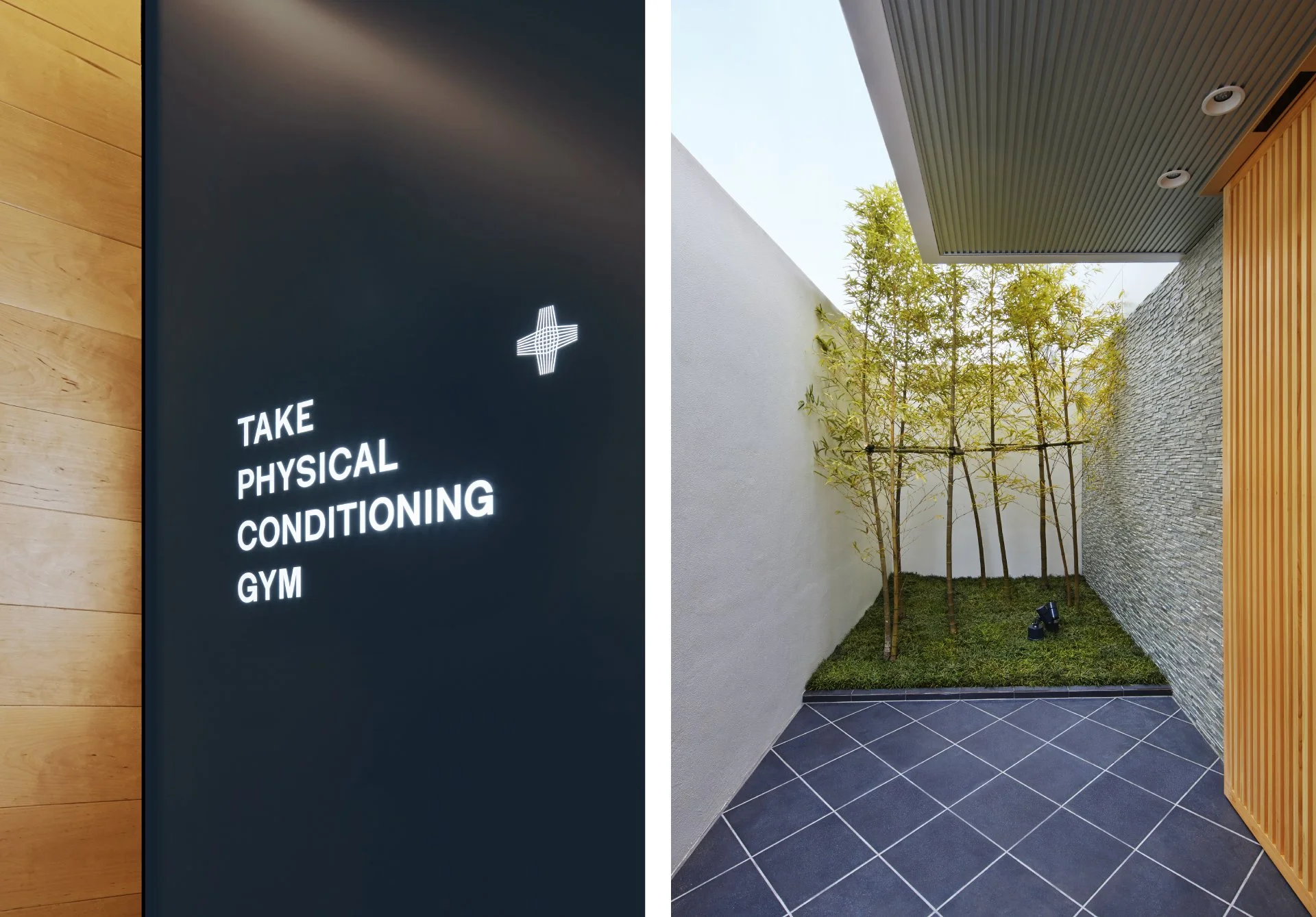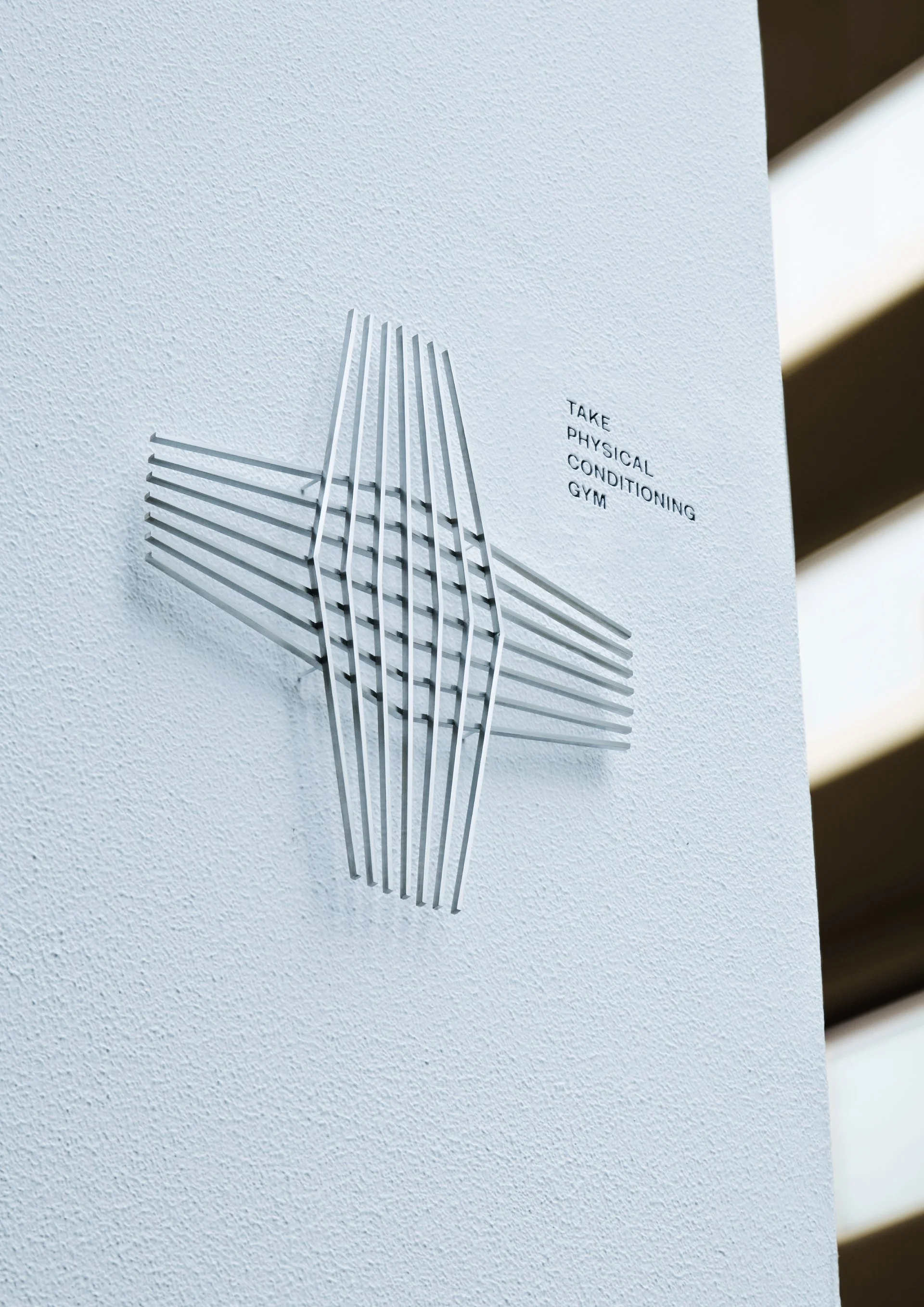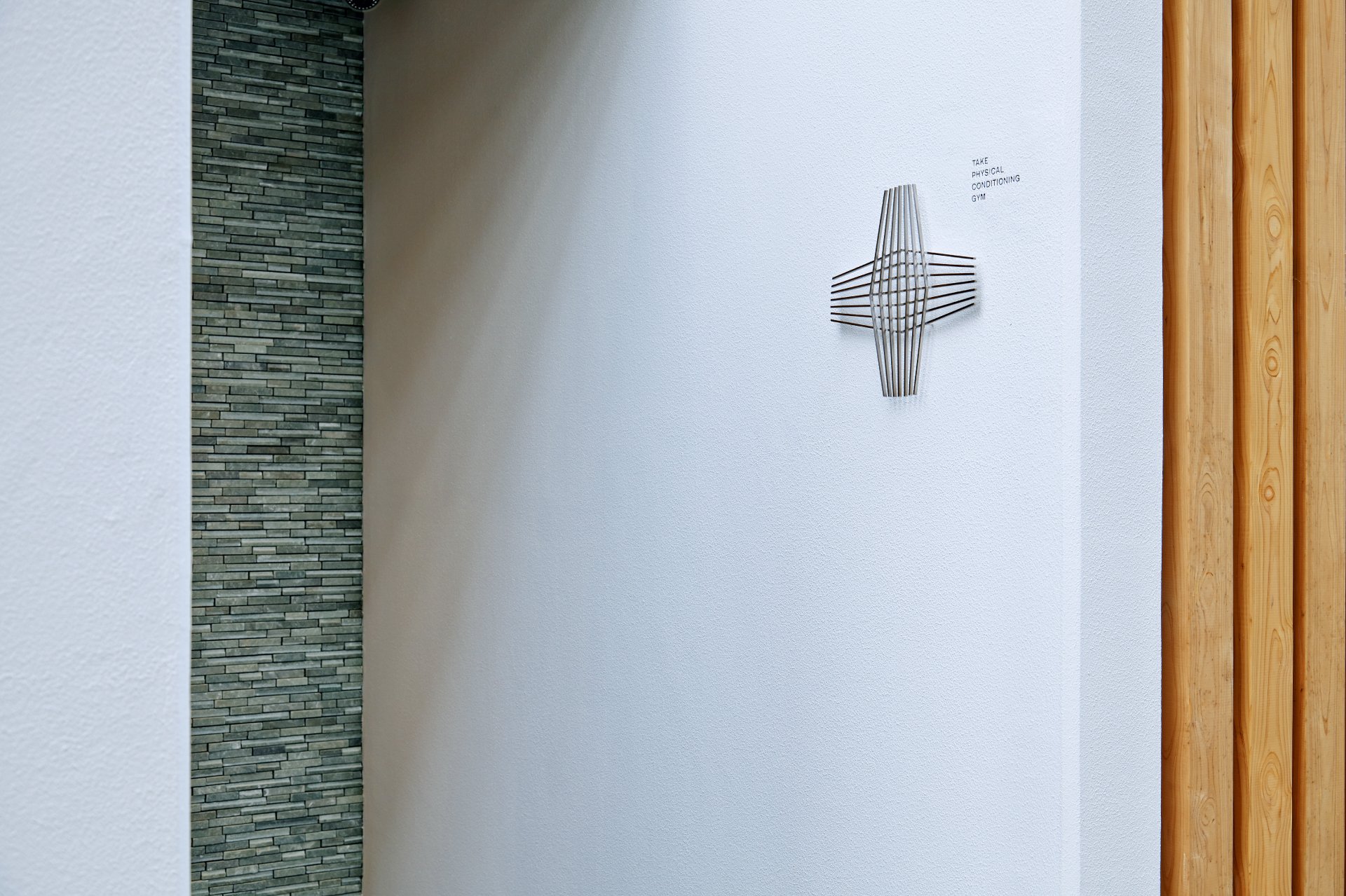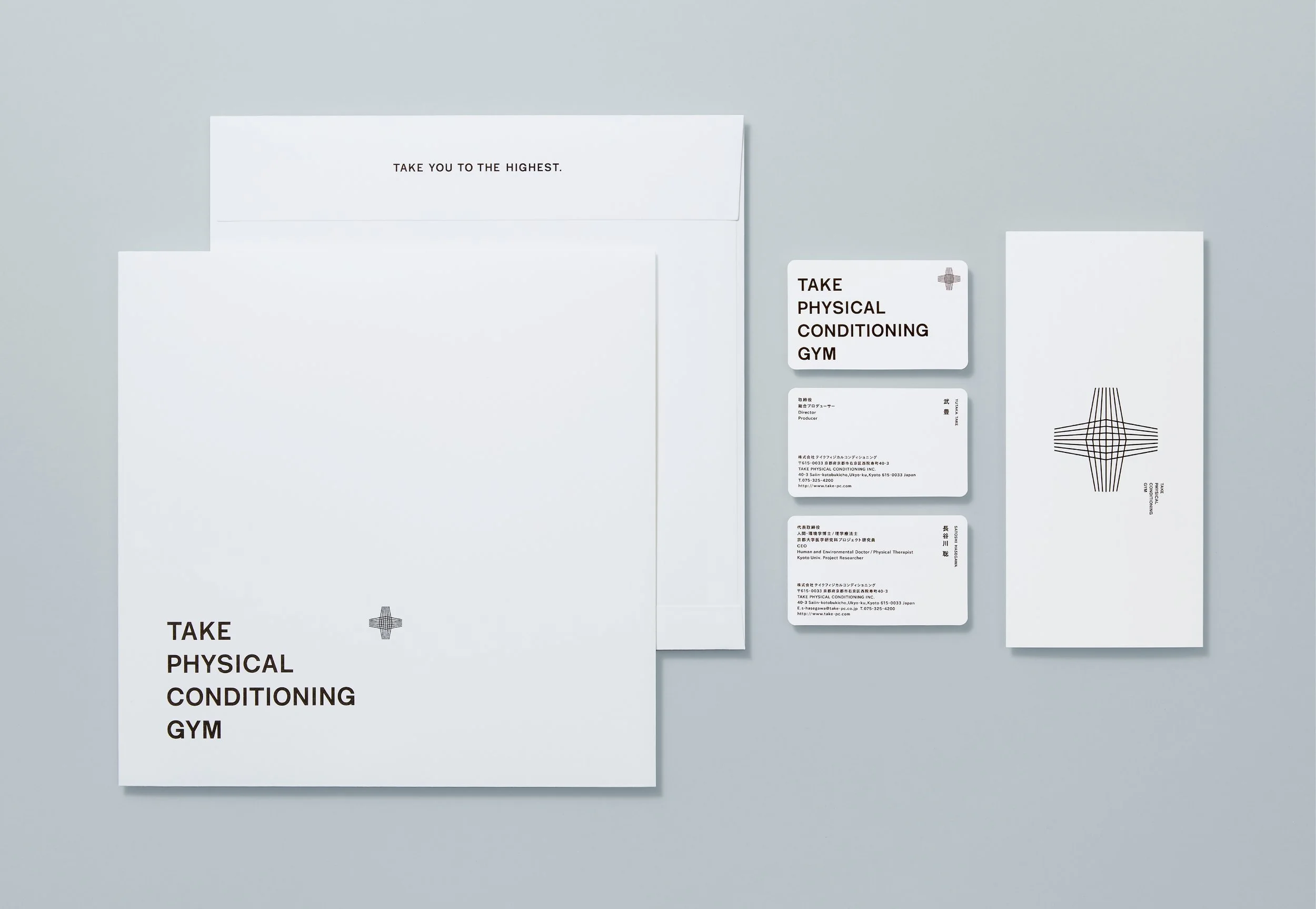 Branding for “TAKE PHYSICAL CONDITIONING GYM,” produced by jockey Yutaka Take and opened in Ukyo, Kyoto. Rooted in physiotherapy, its method supports both athletic performance and daily conditioning. The project was developed holistically, from naming through spatial identity, for both athletes and the general public.