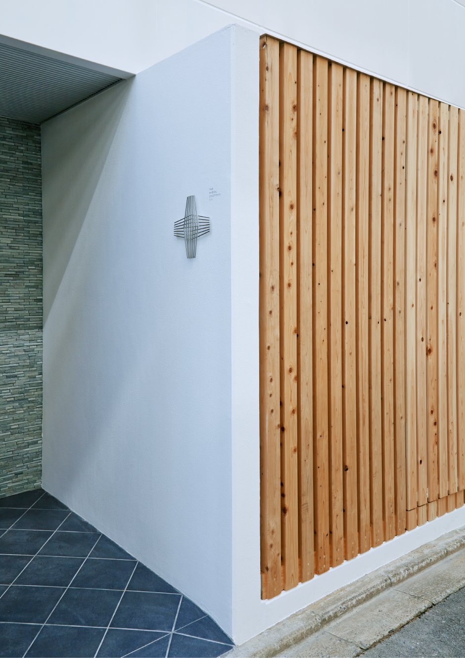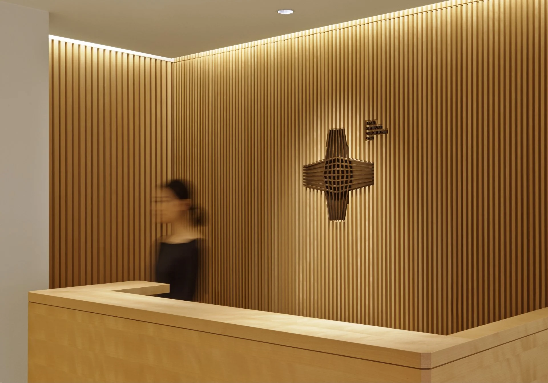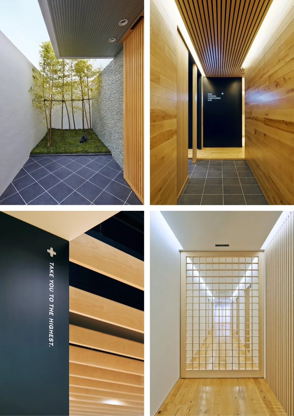 The visual identity embodied the theme of “muscle expansion,” the essence of physiotherapy. Intersecting lines symbolized both the initial “t” of the brand and a medical cross, while grid patterns reminiscent of muscle fibers extended into the interiors, harmonizing with the traditional architectural design of Kyoto.