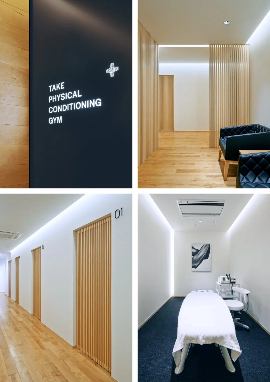 Branding for “TAKE PHYSICAL CONDITIONING GYM,” produced by jockey Yutaka Take and opened in Ukyo, Kyoto. Based on physiotherapy, its original method supports everything from athletic performance to daily conditioning. The facility was consistently designed from naming to spatial identity for both athletes and the general public.